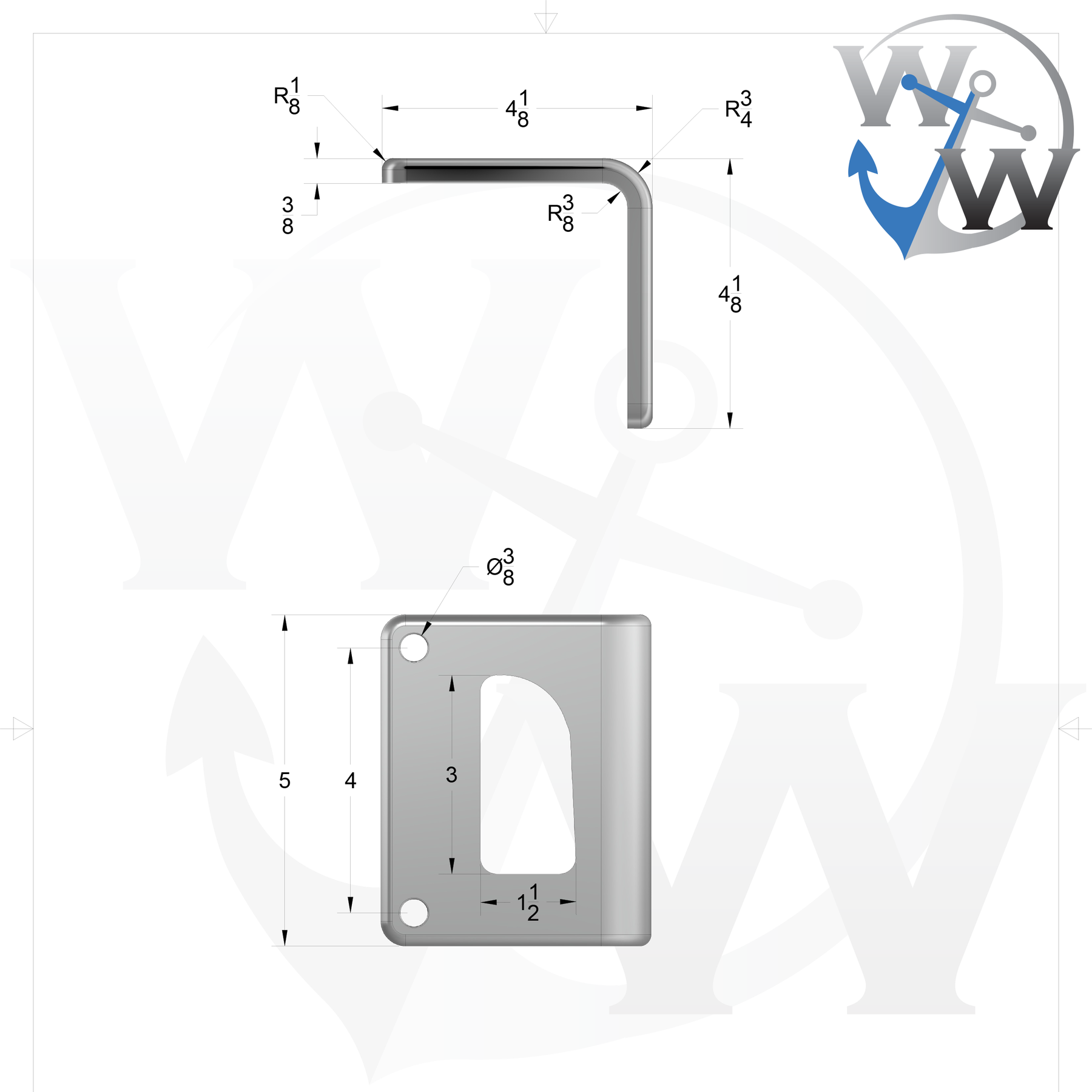 The right pad to install your D-3 size D-pipe to pedestals or any other structure that requires angled attachment. 90º bend. Discrete 3/16" fillet. Right-hand side.