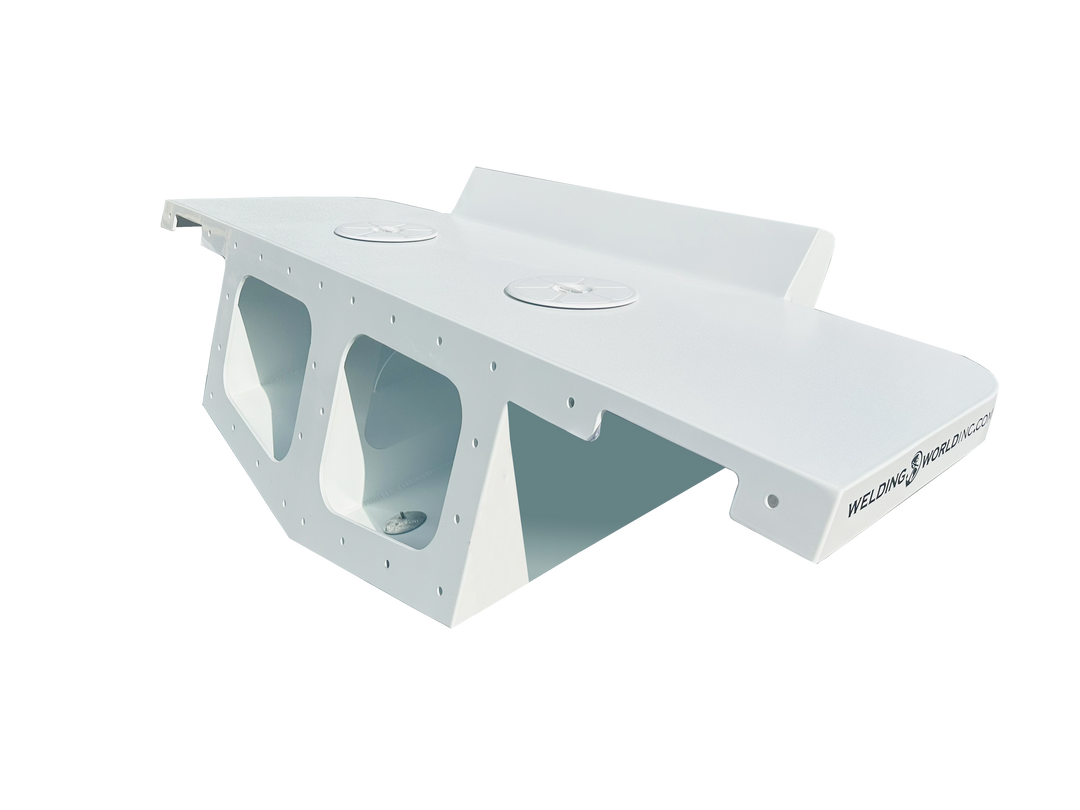 A white outboard engine bracket floating on the turquoise ocean with waves and white foam