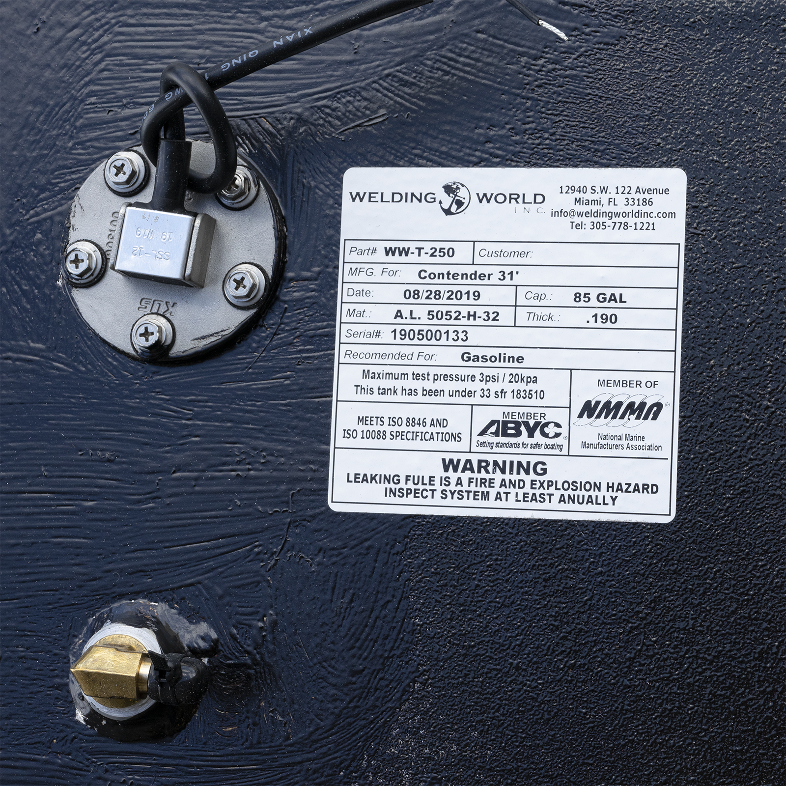 Our tanks are built by an NMMA-type certified manufacturer and produced in accordance with all ABYC standards.