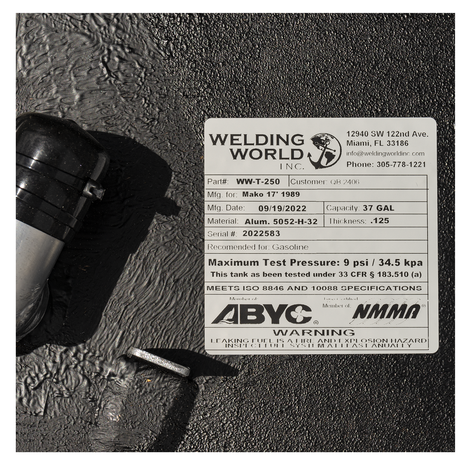 Every tank is hand-crafted using GTAW (TIG) welding, exceeding ASME and AWS D3.7:2004 standards for marine aluminum fabrication.