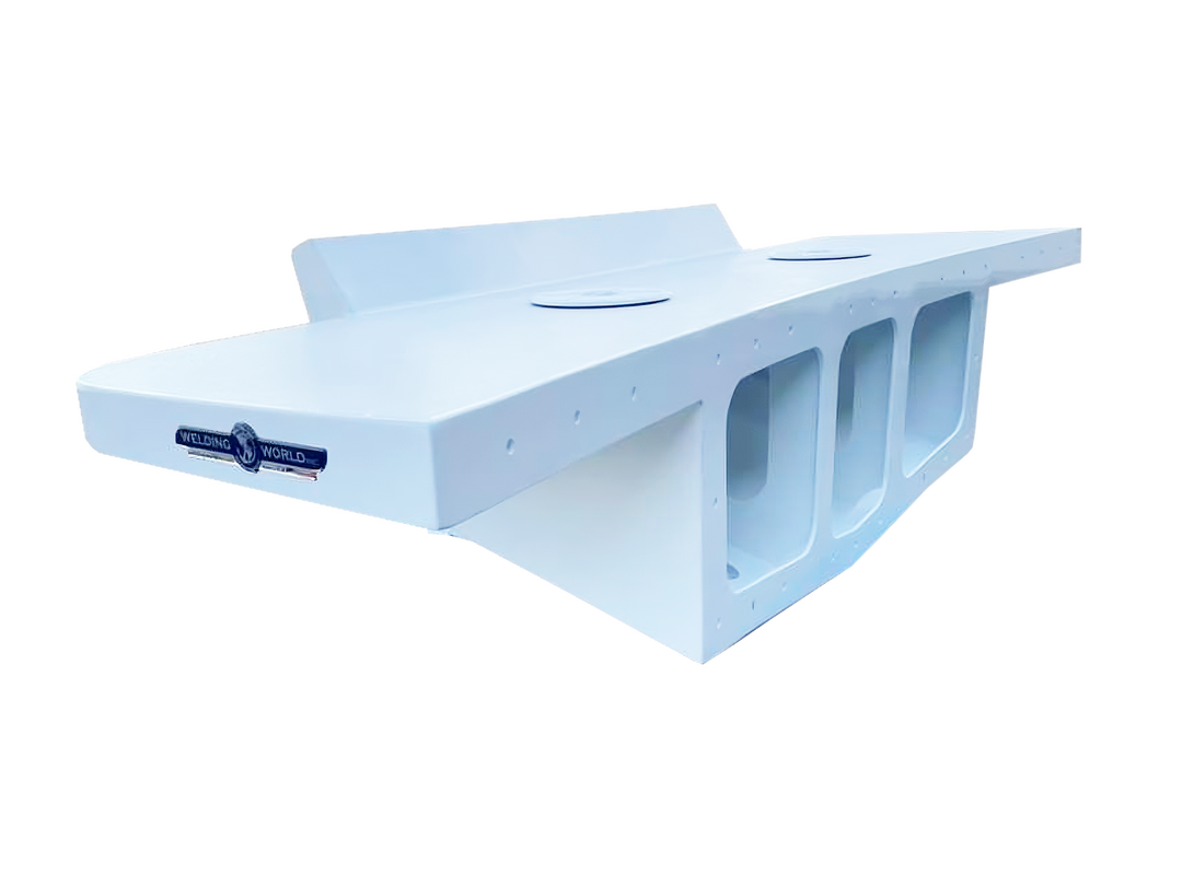 Aerial view of various boat brackets floating on the ocean, arranged by boat make and model, with turquoise water and white foam