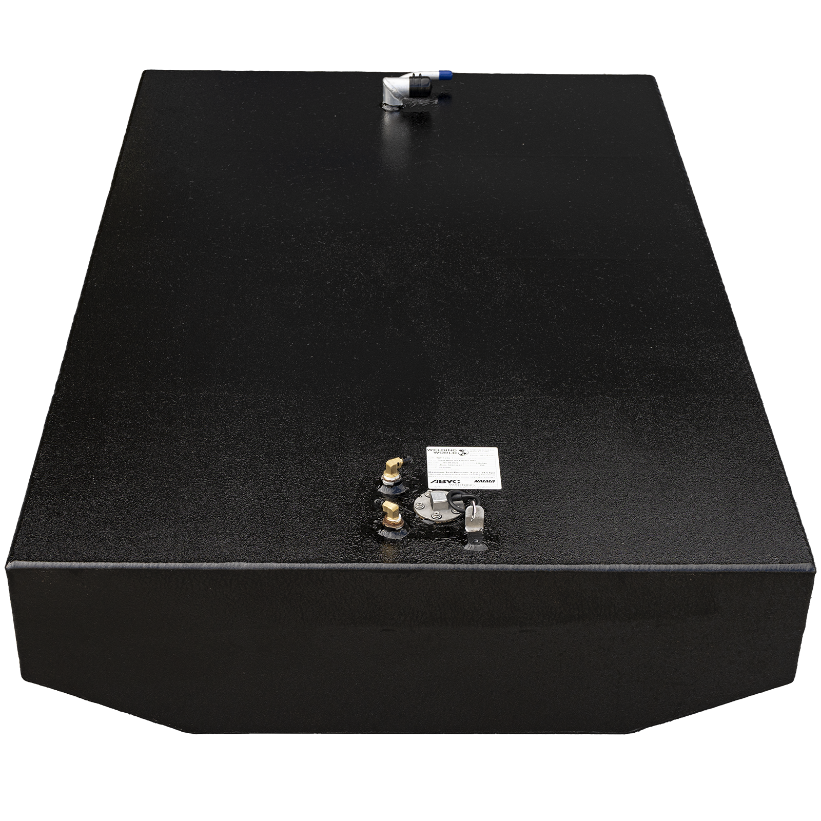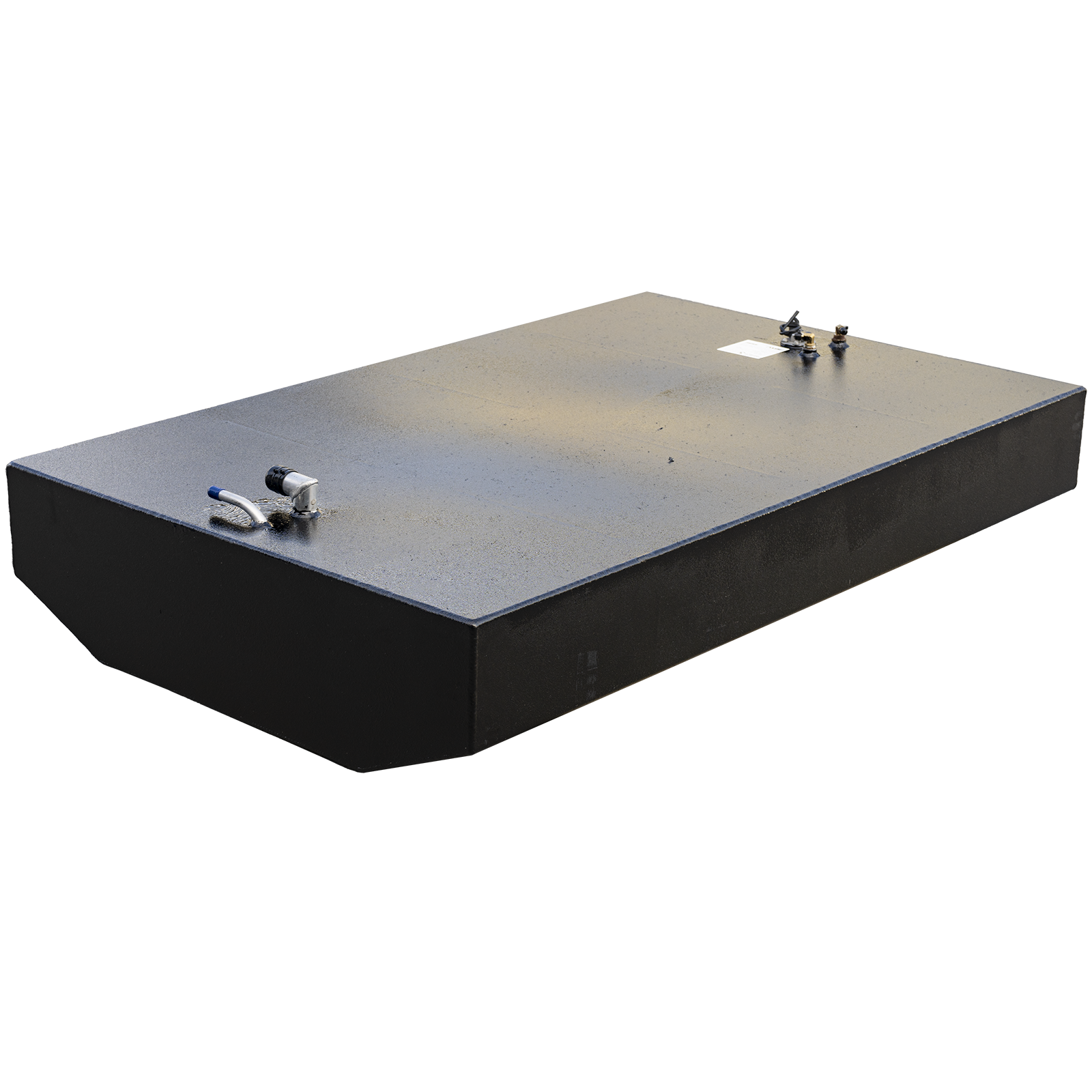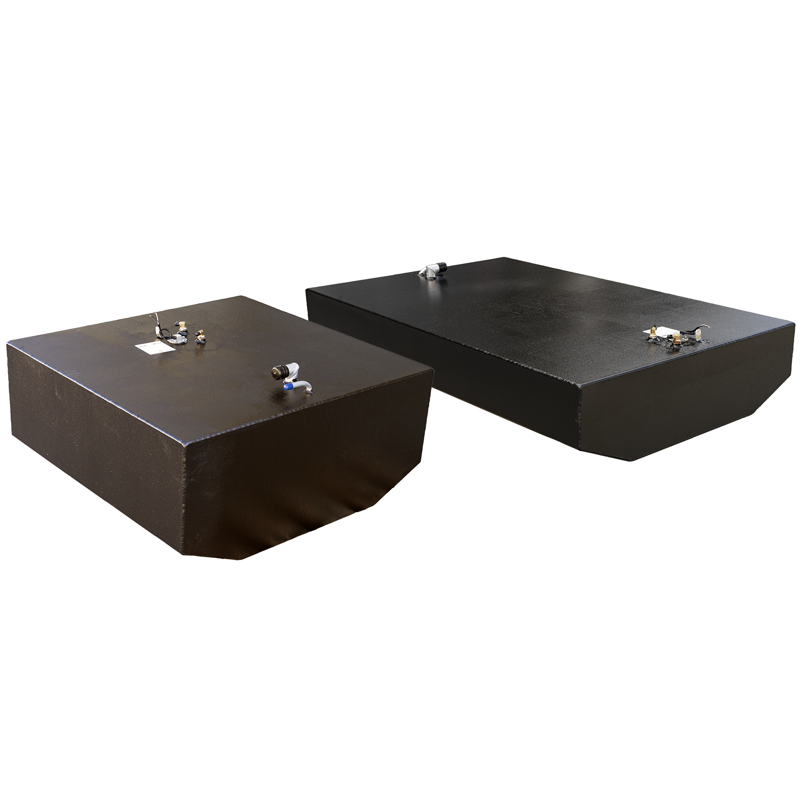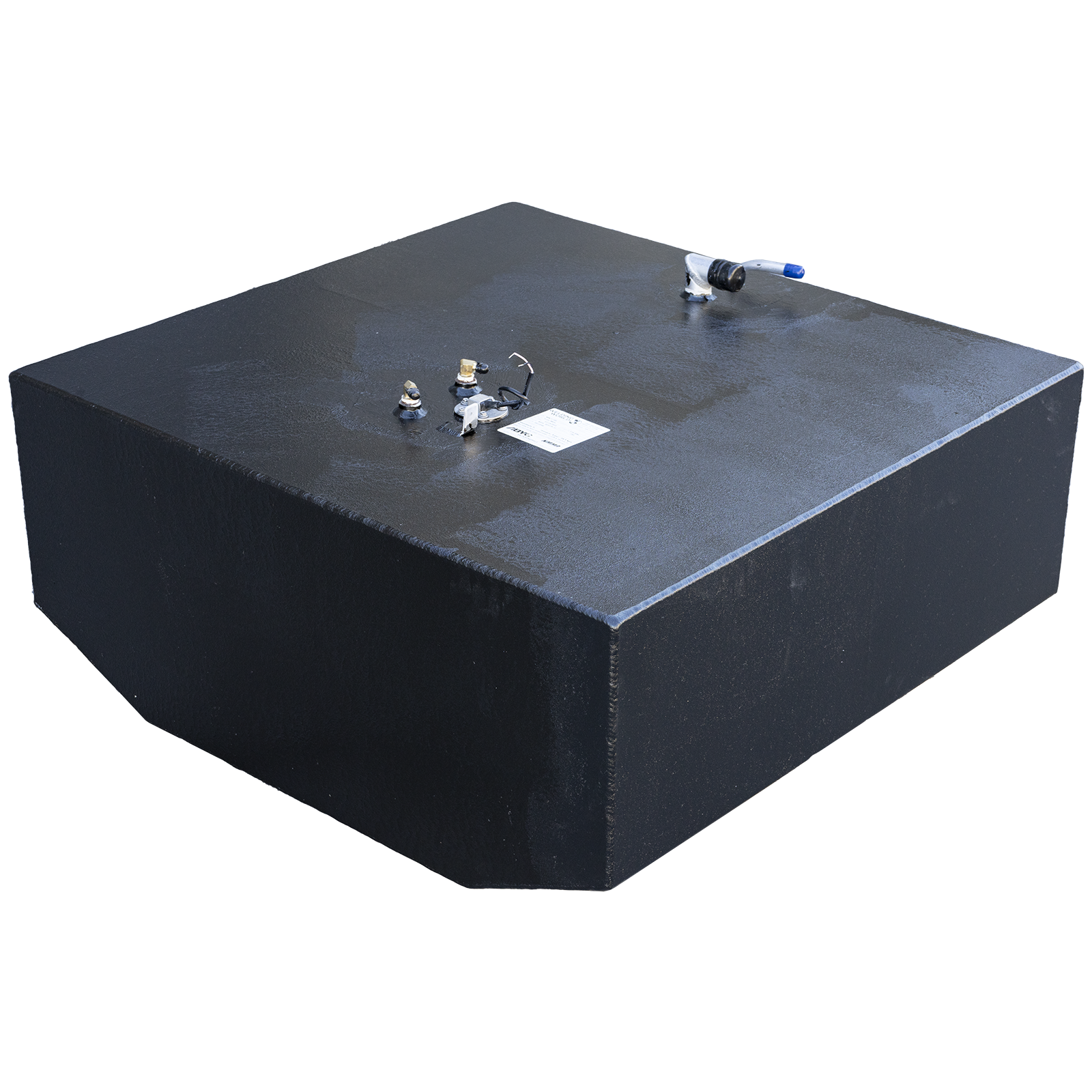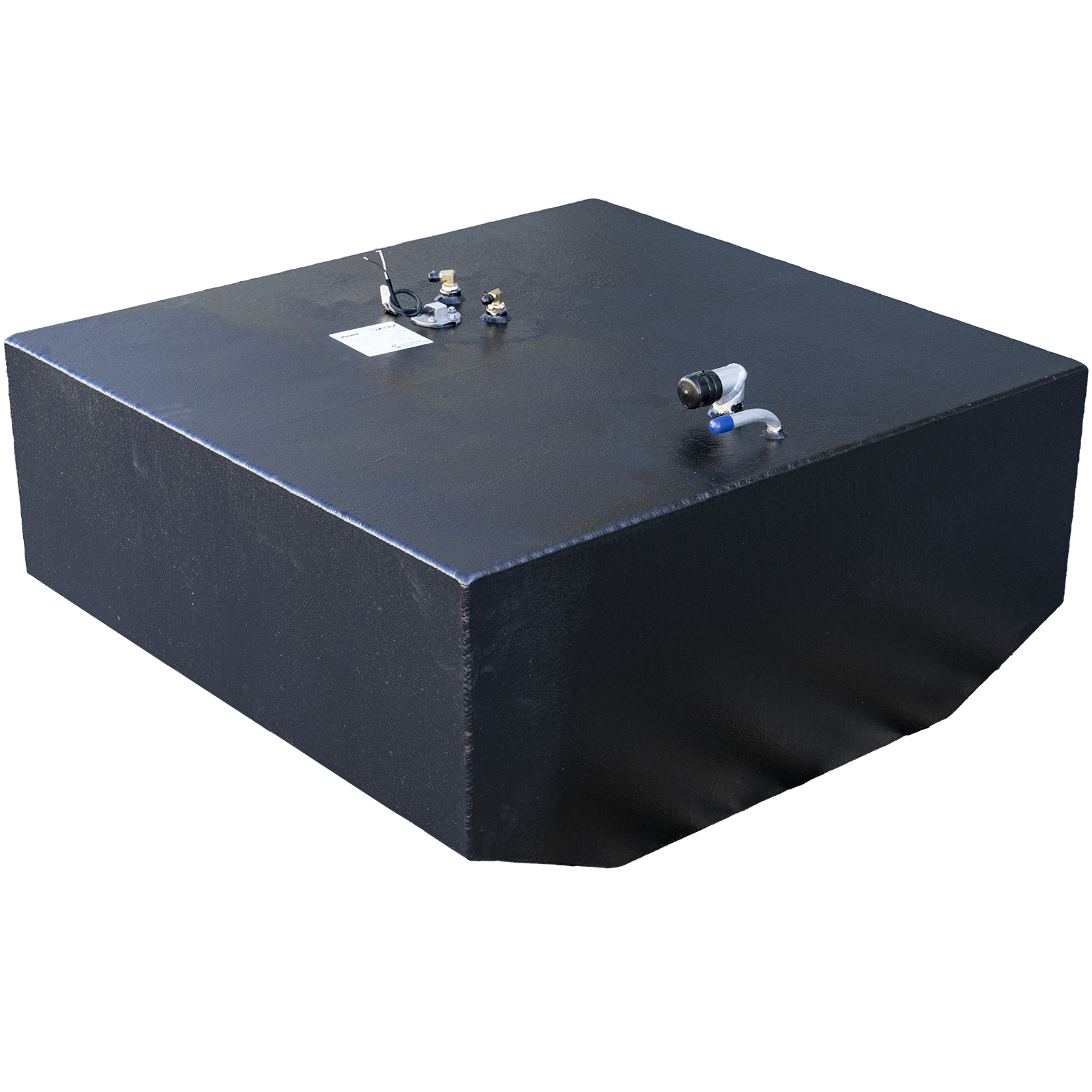 119-gallon gross capacity aluminum fuel tank built for the 2001 Grady-White 265 Express, serving as the aft unit in the tandem OEM replacement combo kit. Tank dimensions are 41″ (L) × 39″ (W) × 18″ (H), shown with top-mounted hardware for fuel delivery, return, and sender integration. Flat surface and marked ports enable straightforward installation, while visual consistency with the forward tank ensures balanced cavity alignment and compliant system upgrade