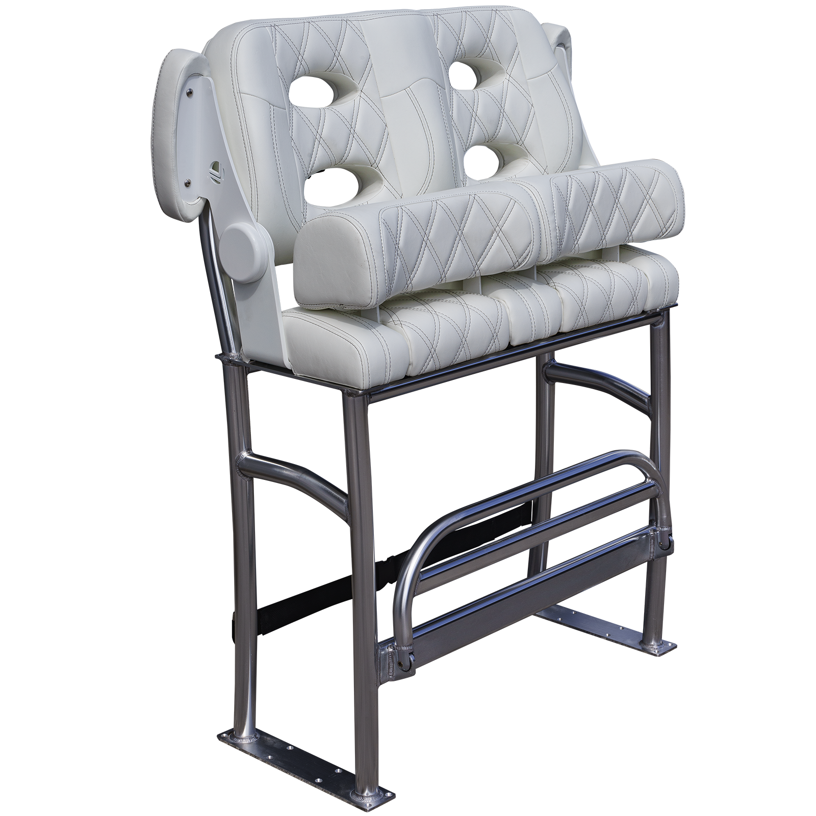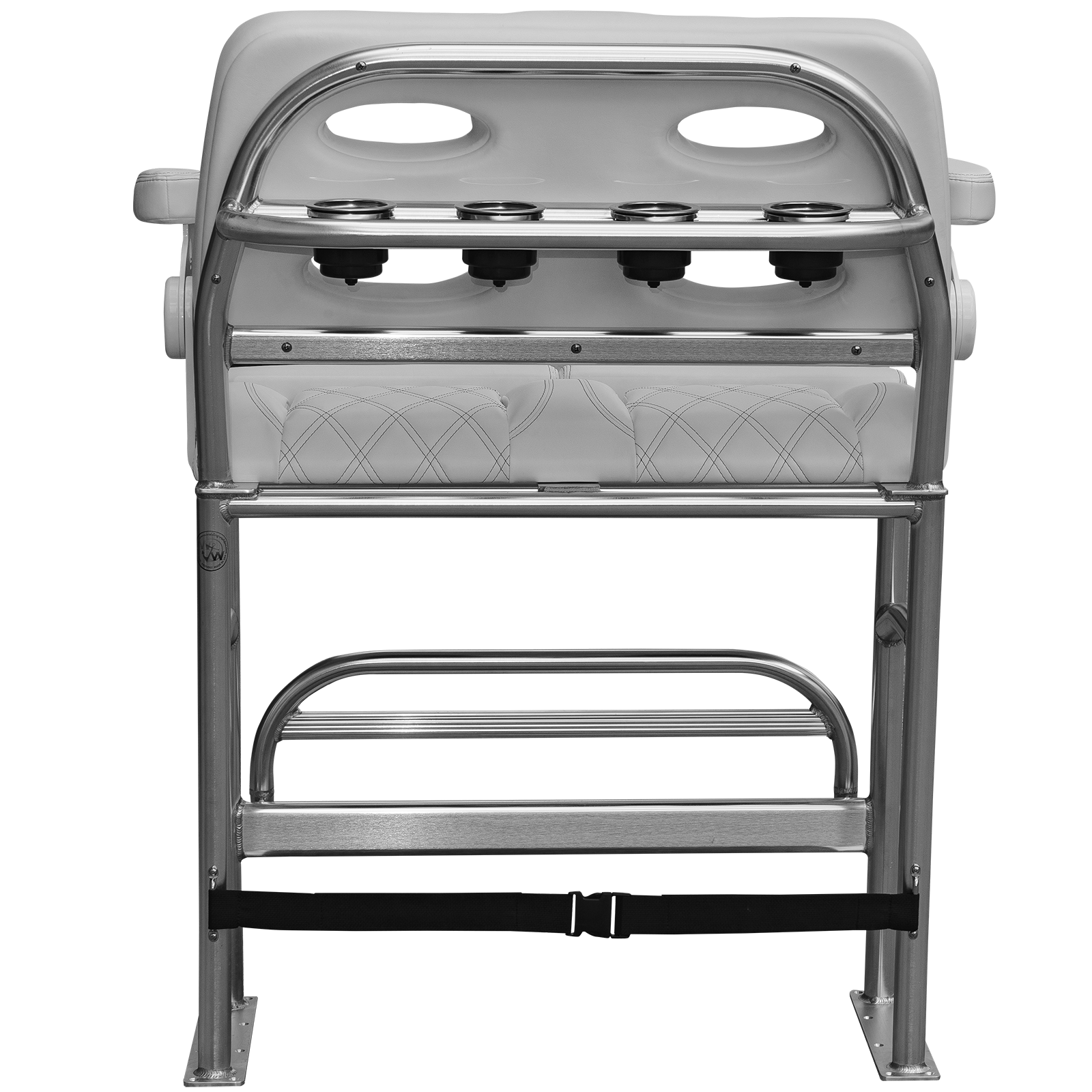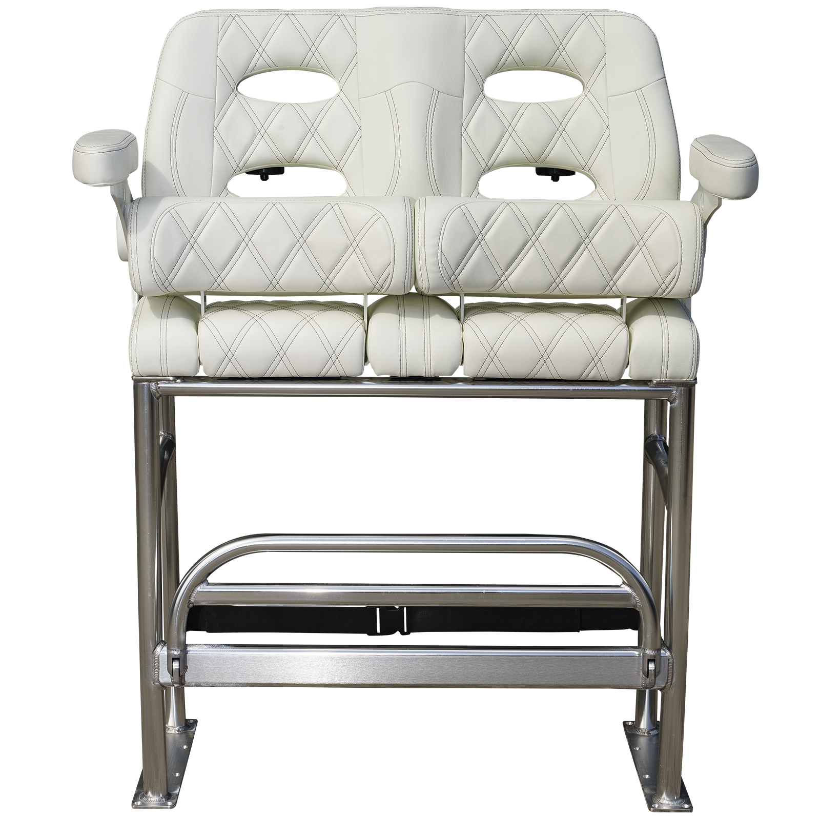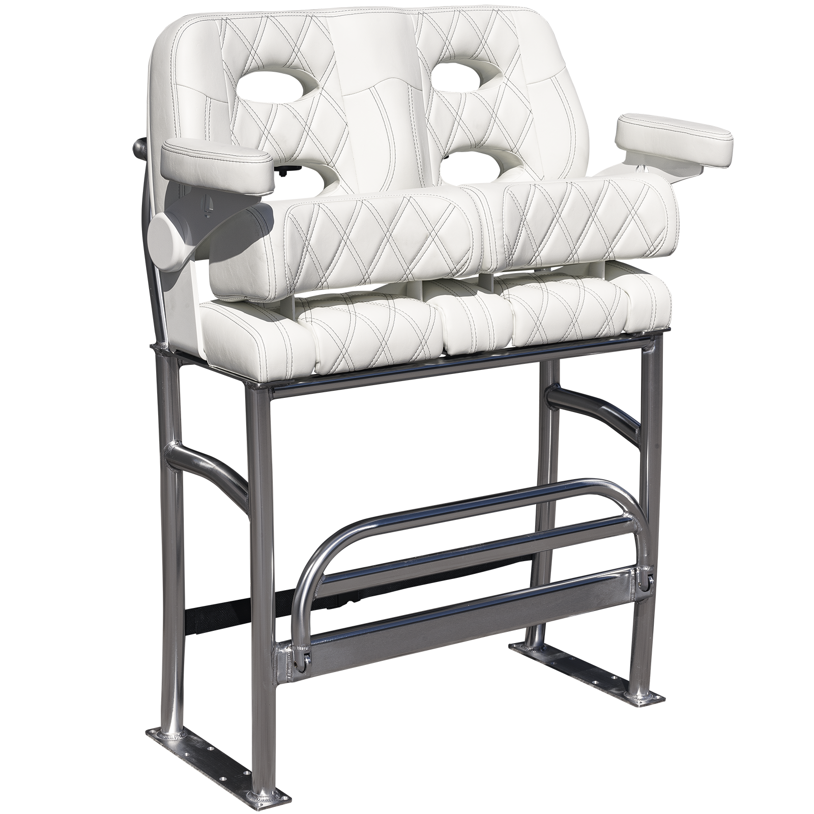 We mated Llebrock’s Billfish convertible bolster bench seat on top of a purpose-made, super sturdy, bright finish marine spec anodized 1 - 1/2 inch diameter, schedule 40 TIG fillet welded 6061-T6 aluminum structure built to outlast the hull you'll attach it to.