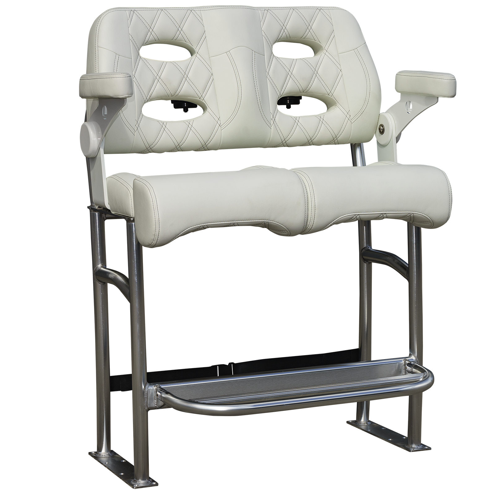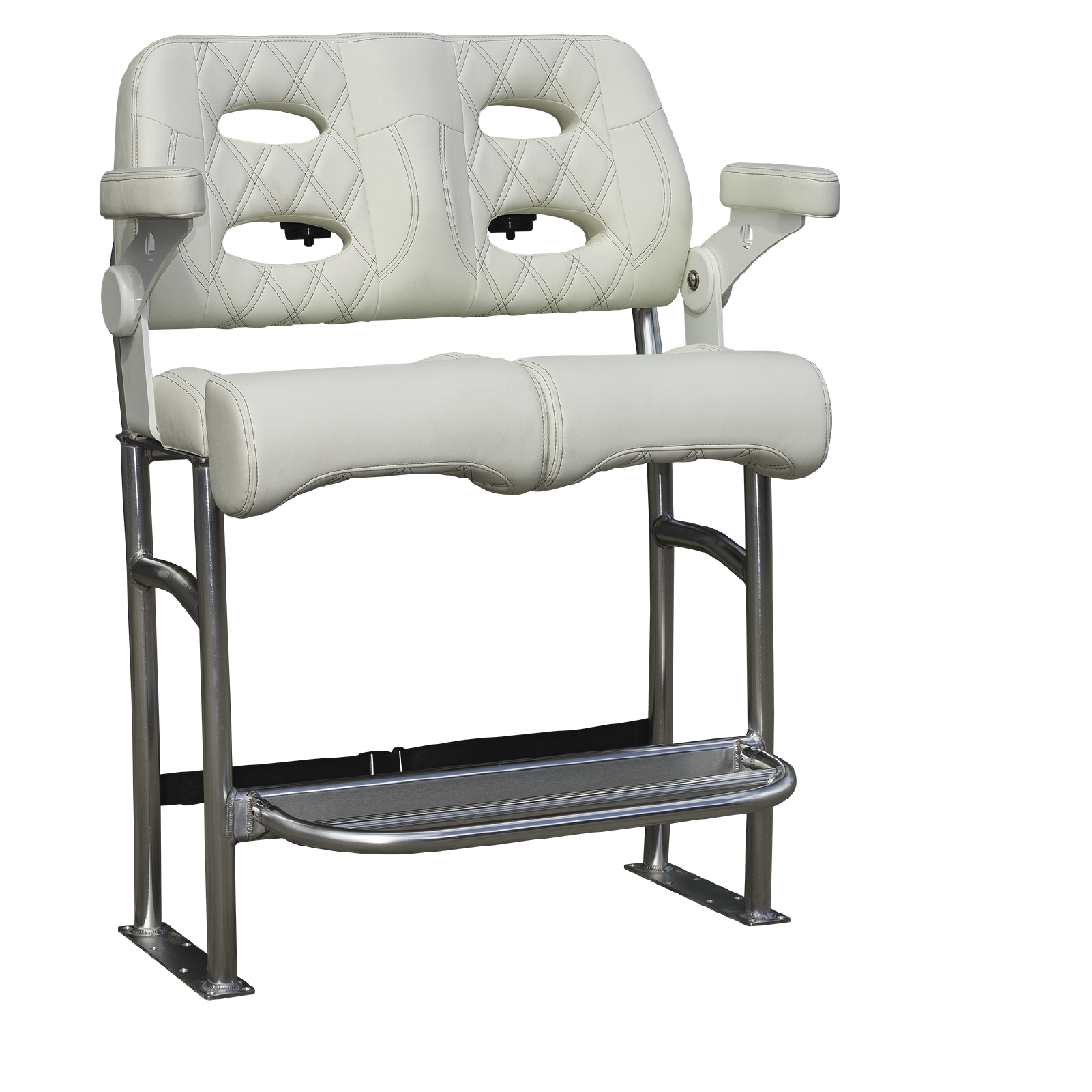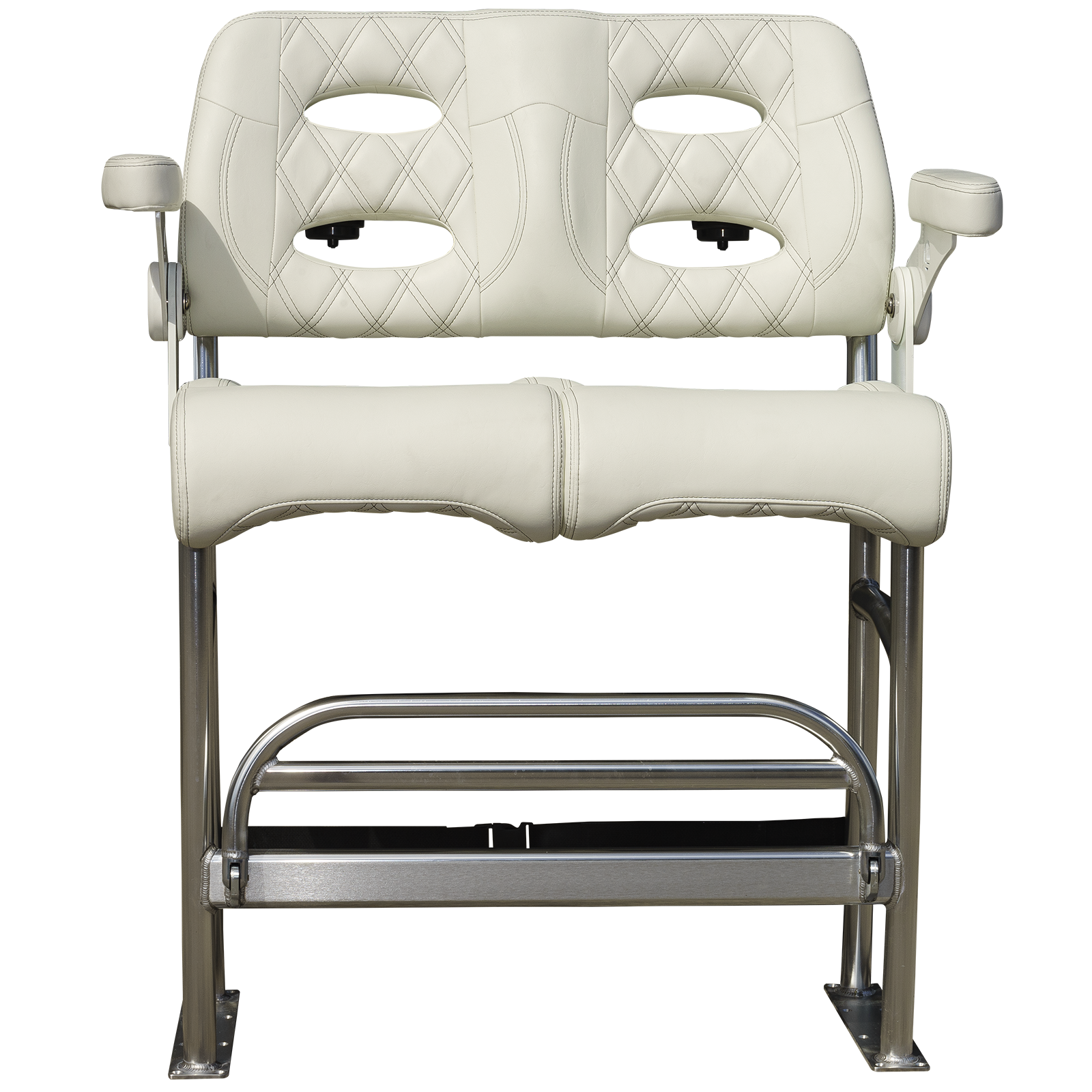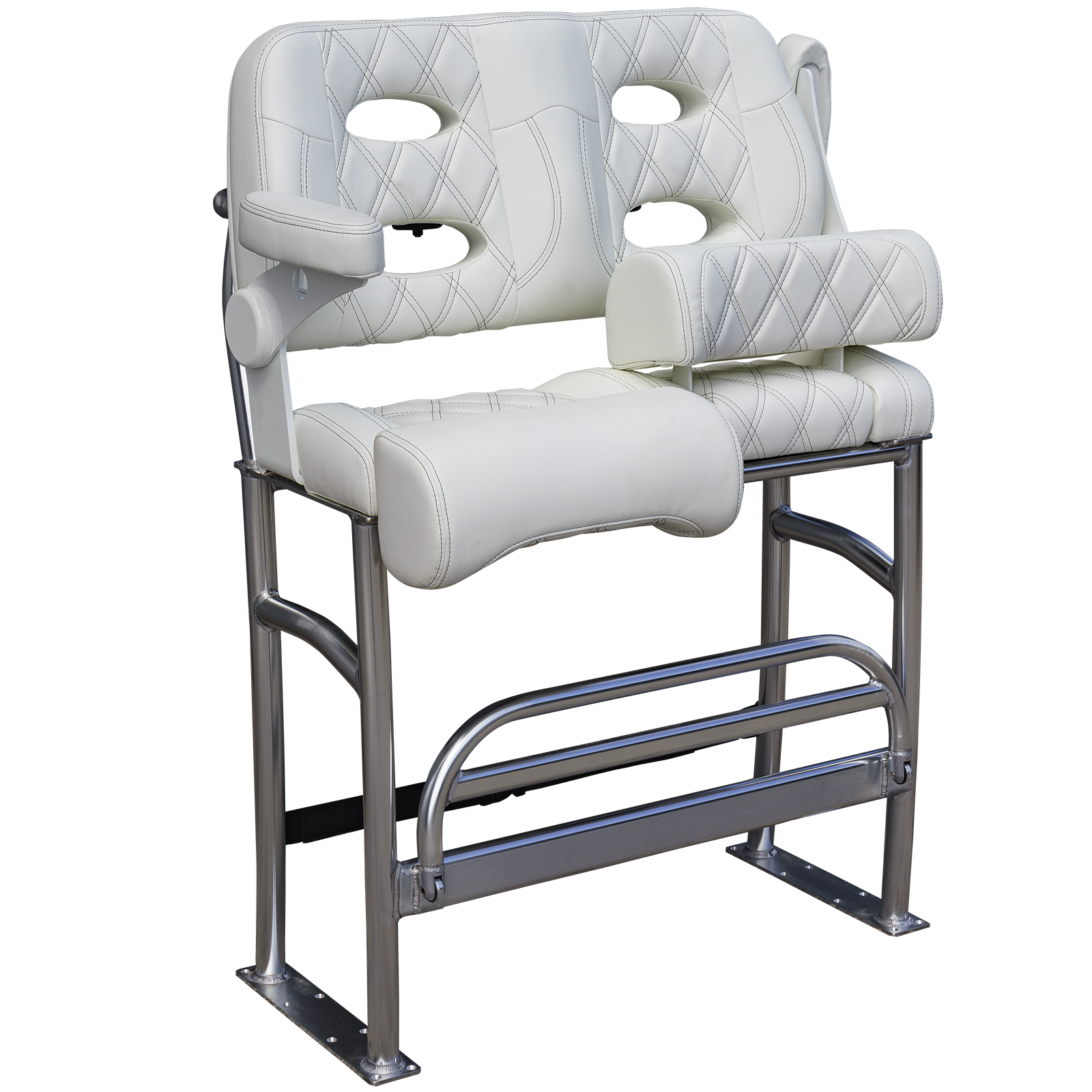 We mated Llebrock’s Billfish convertible bolster bench seat on top of a purpose-made, super sturdy, bright finish marine spec anodized 1 - 1/2 inch diameter, schedule 40 TIG fillet welded 6061-T6 aluminum structure built to outlast the hull you'll attach it to.